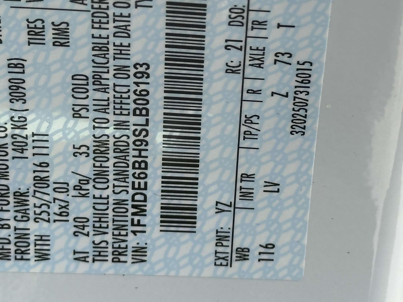 VIN: 1FMDE6BH9SLB06193