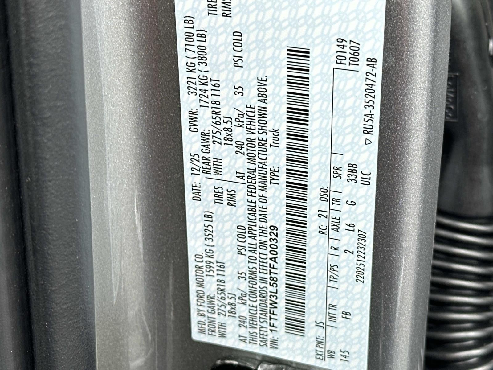 VIN: 1FTFW3L58TFA00329